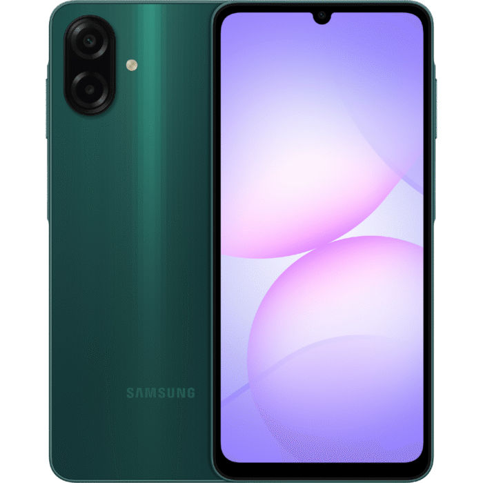 Buy the Samsung A07 at Mobilephones Arena Today and have it delivered to your door step.The device features a vibrant 6.7-inch PLS LCD display with a 90Hz refresh rate and runs on Android 15 with One UI 7.2 For photography, it has a dual rear camera setup with a 50 MP main lens and an 8 MP selfie camera.3 The phone is powered by a large 5000 mAh battery with 25W fast charging and includes a side-mounted fingerprint sensor for secure access.4